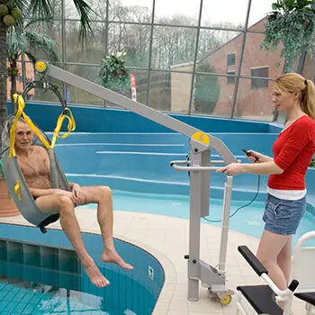 Con nuestra grúa de piscina HandiMove modelo 3200, el acceso a la piscina es sencillo y seguro. Pensada para mejorar la calidad de vida, permite pasar directamente de la silla de ruedas al agua con total confianza.
